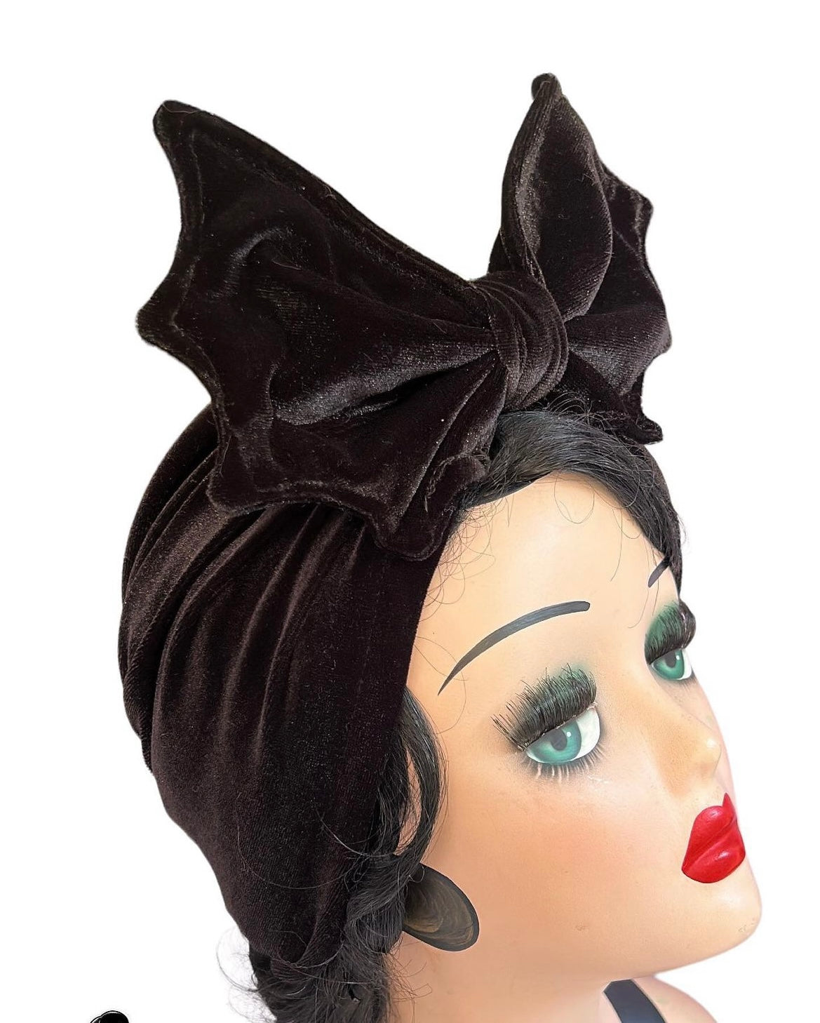 This OOAK full coverage bat turban is so cute! ORIGINALLY MADE AND DESIGNED BY ME. You just put it on and secure in place with pins & you’re ready to go!